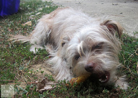 Dibble really liked his Woolly Bully and even showed me his signature "no hands" treat eating technique! This really scrubs those back teefies and helps remove plaque.